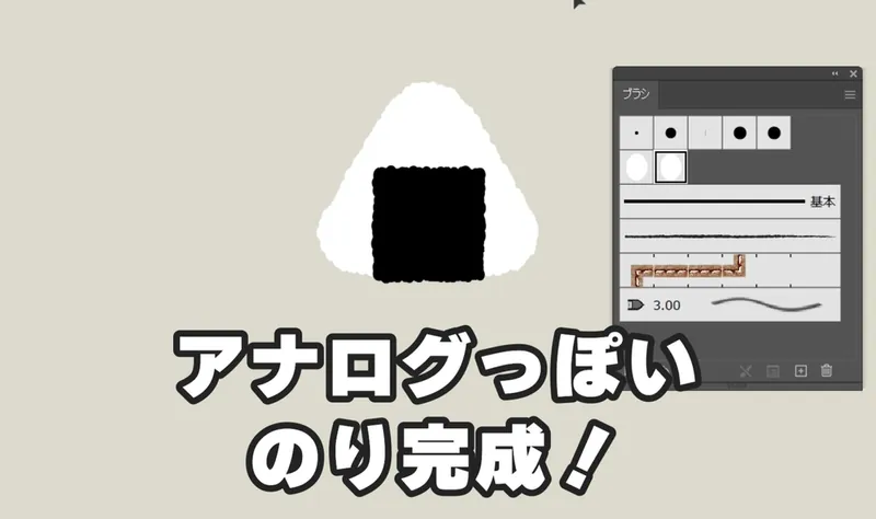 今回作ったブラシは、おにぎり専用ではなくて、和菓子や動物など、アナログなイラスト全般と相性抜群の便利なツールになっています。いろいろなイラストをアナログ風に!ぜひ試してみてくださいね!