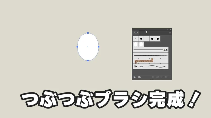 2. ウィンドウ > ブラシ を開いてブラシパネルを表示し、描いた楕円をパネルの中にドラッグ&ドロップします。