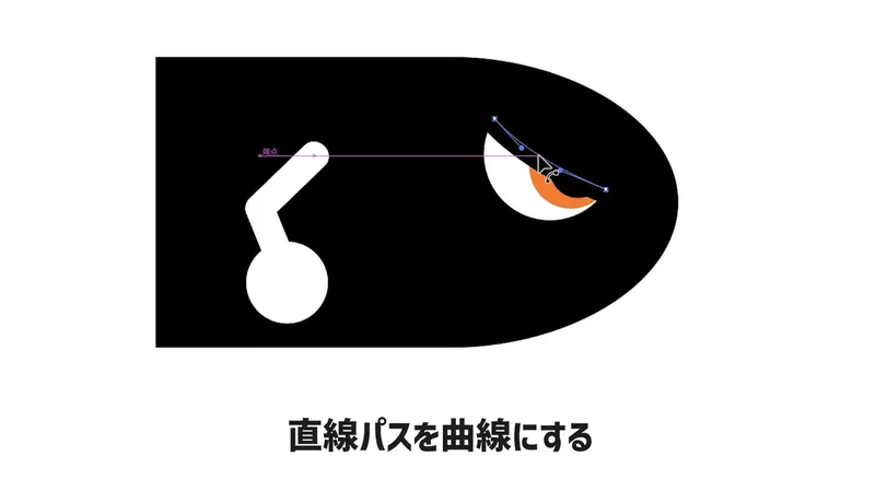 直線を触ると点のすぐ横に現れる小さな(丸いマーク)を、外側に向かってグーッとドラッグしてください。これで直線がきれいなカーブになります。その次に角を丸くします。