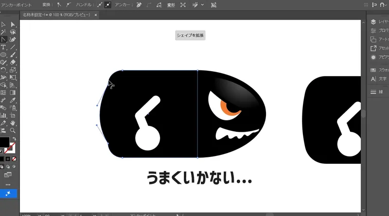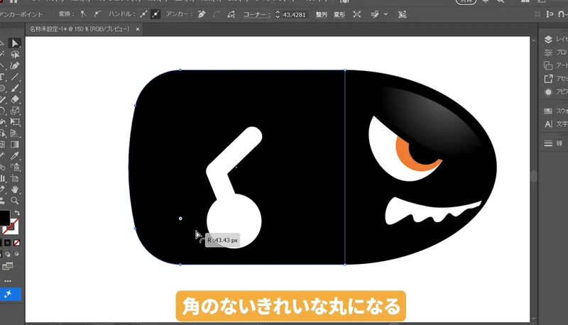 Illustratorでキャラクターロゴ:弾丸キャラクターの作成